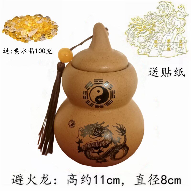 小土陶瓷瓶罐子黄色葫芦老式五方土化解厨房辟火龙瓶和黄碎石摆件