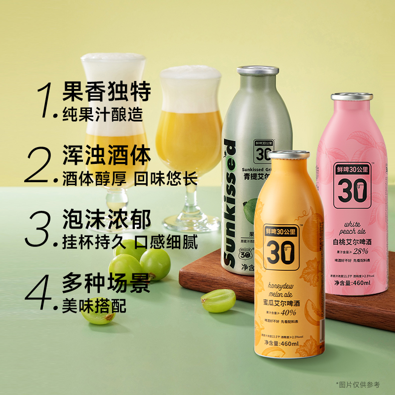 【李佳琦直播间】鲜啤30公里精酿艾尔啤酒果啤微醺组合460ml*4罐