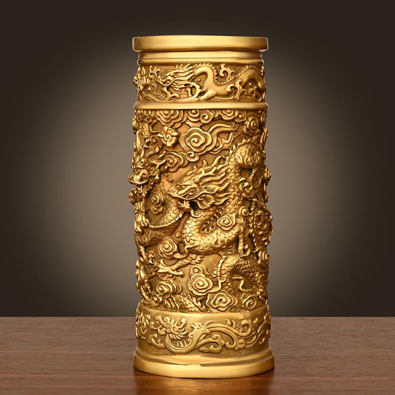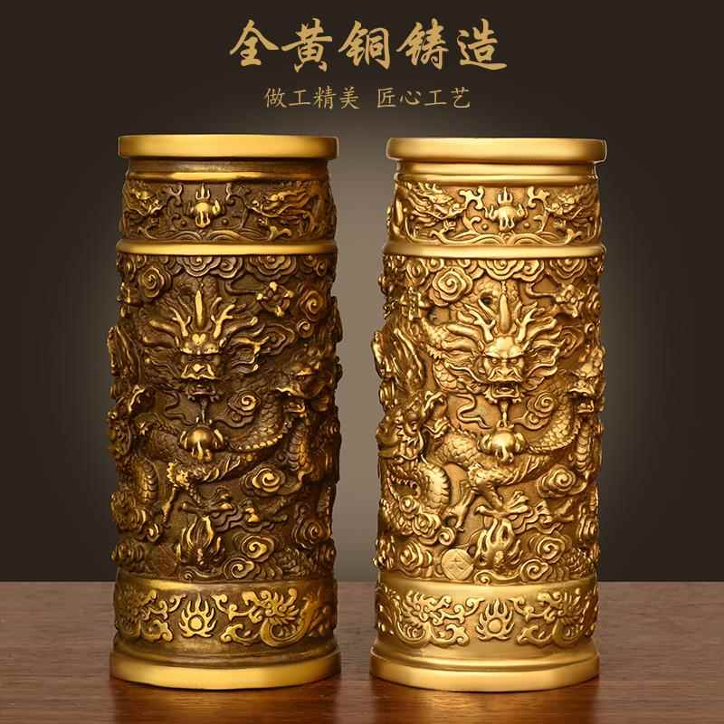铜香筒摆件九龙香筒大号家居客厅室内佛堂装香摆放纯铜中式装饰品