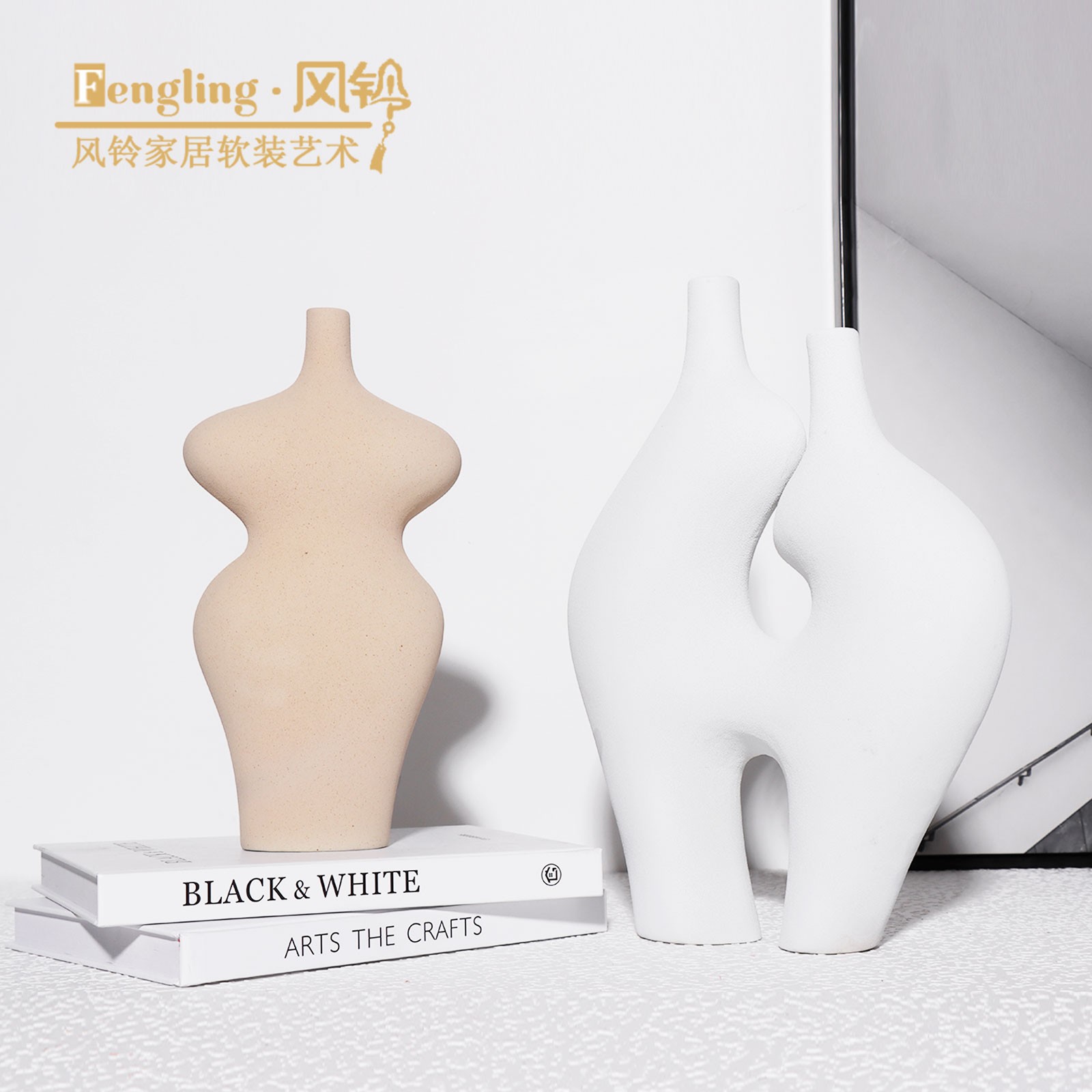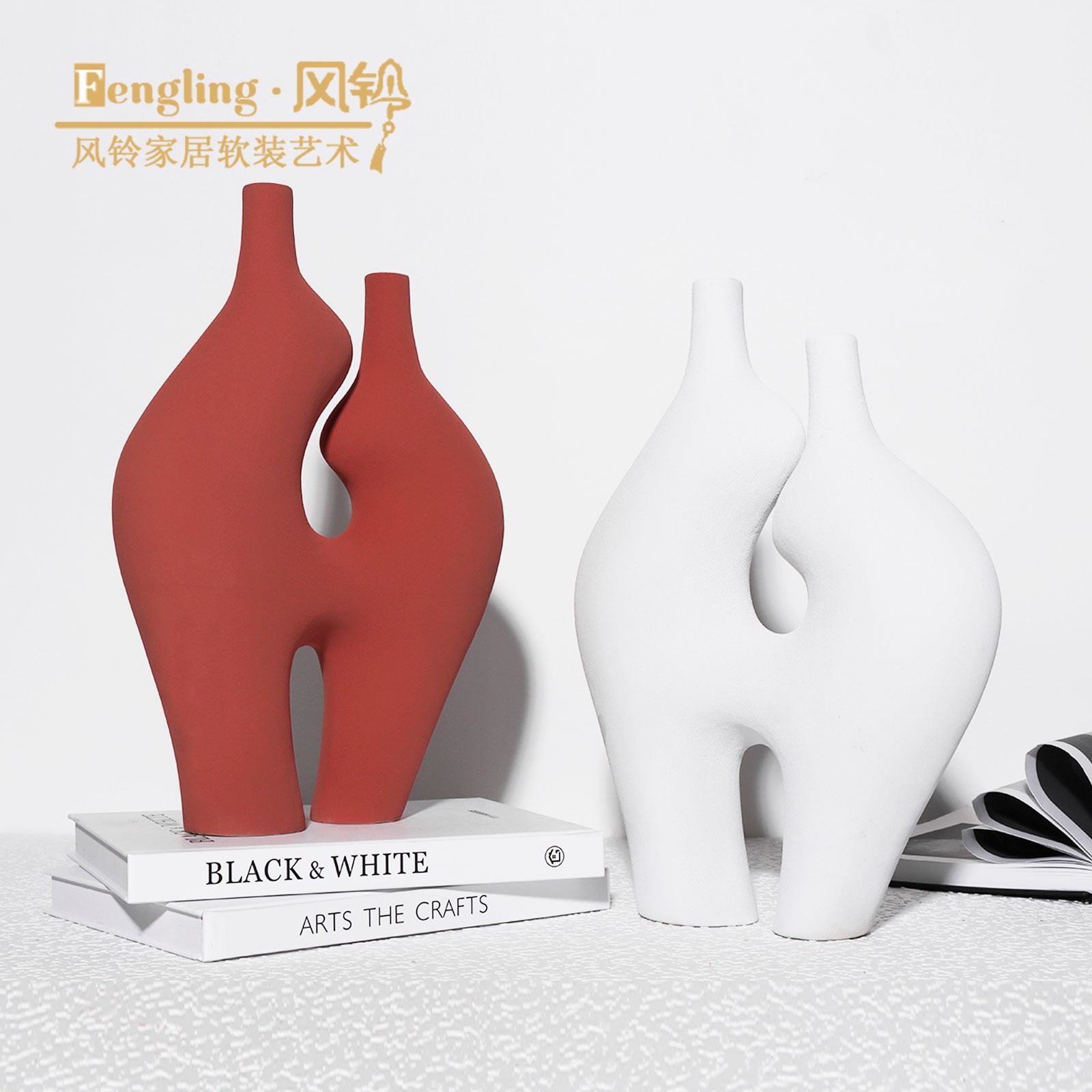 现代简约原创艺术造型陶瓷摆件客厅电视柜红色蓝色组合装饰