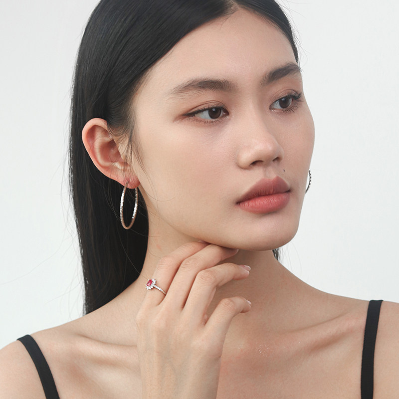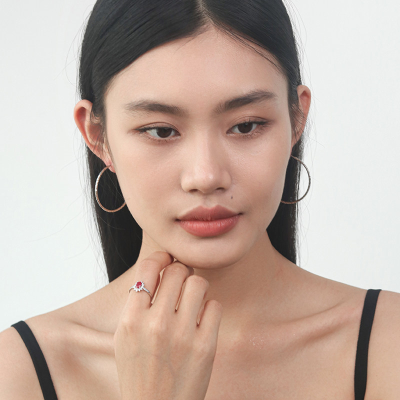 Moment 意式浪漫 天然红宝石纯银戒指女款轻奢高级感小众设计礼物
