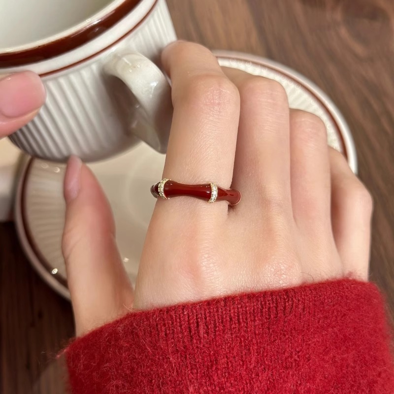 韩版小众设计滴釉镶钻宽版戒指女时尚个性百搭小众轻奢开口可调节