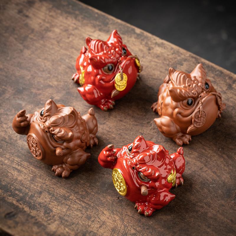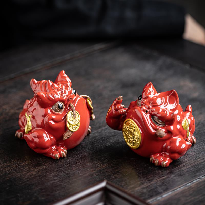 金蟾招财摆件三足蟾蜍小茶桌茶台茶宠办公室装饰客厅酒柜摆设礼品