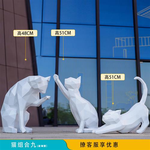 玻璃钢抽象几何猫雕塑户外花园林商场楼盘动物模型景观装饰品摆件
