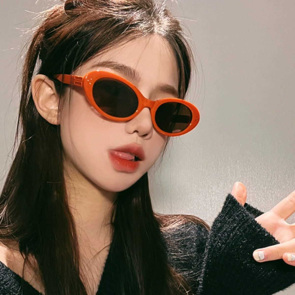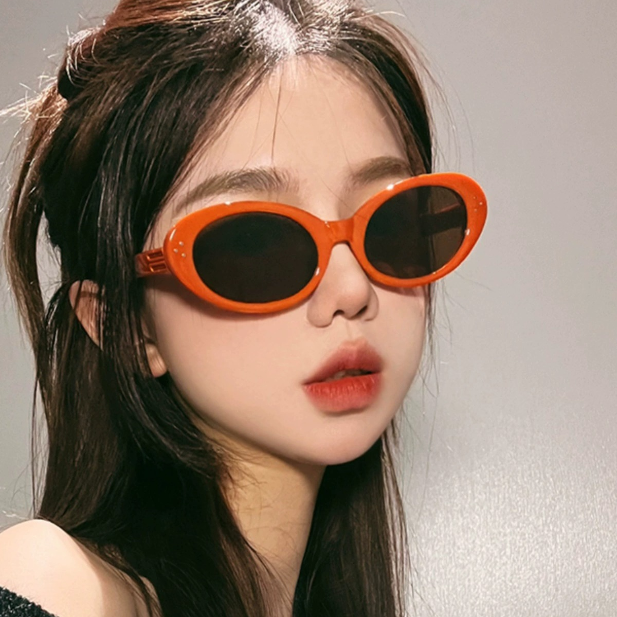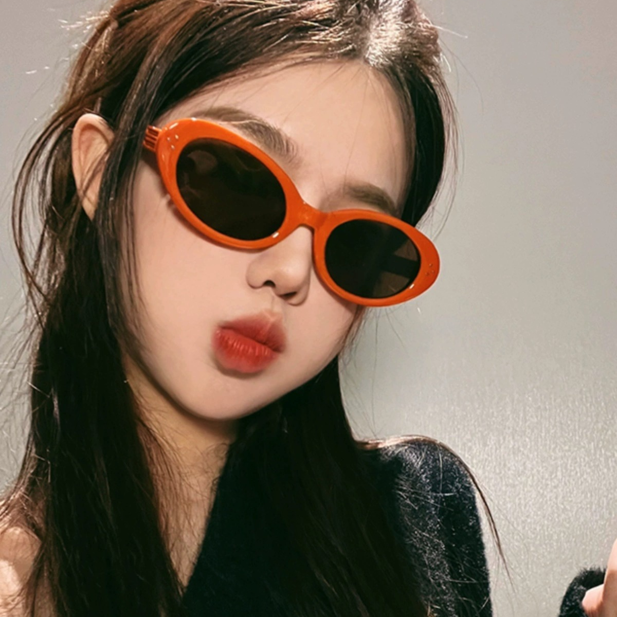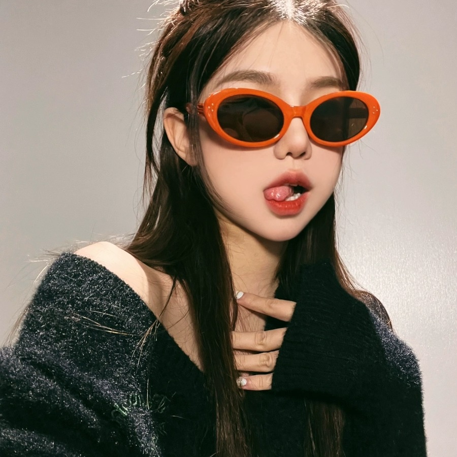 欧美个性小框太阳镜女拽姐新款椭圆框嘻哈南瓜红色墨镜潮女眼镜潮