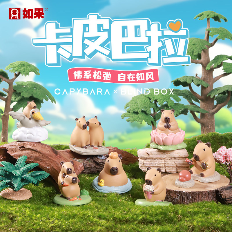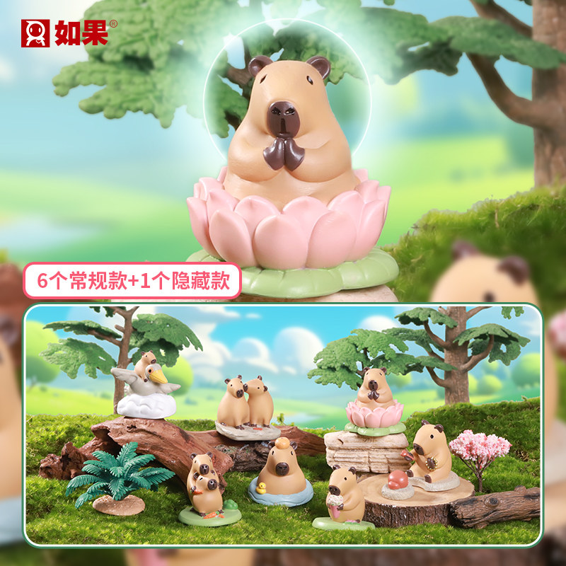 卡通潮玩水豚鼠盲盒手办可爱卡皮巴拉工位摆件公仔男女生日礼物