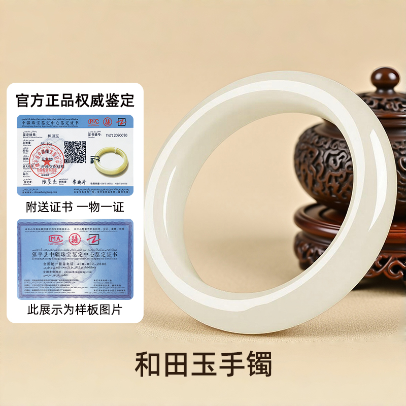 仟喜梵【睿程】高端和田白玉手镯子女款羊脂玉手饰真正品平安玉镯
