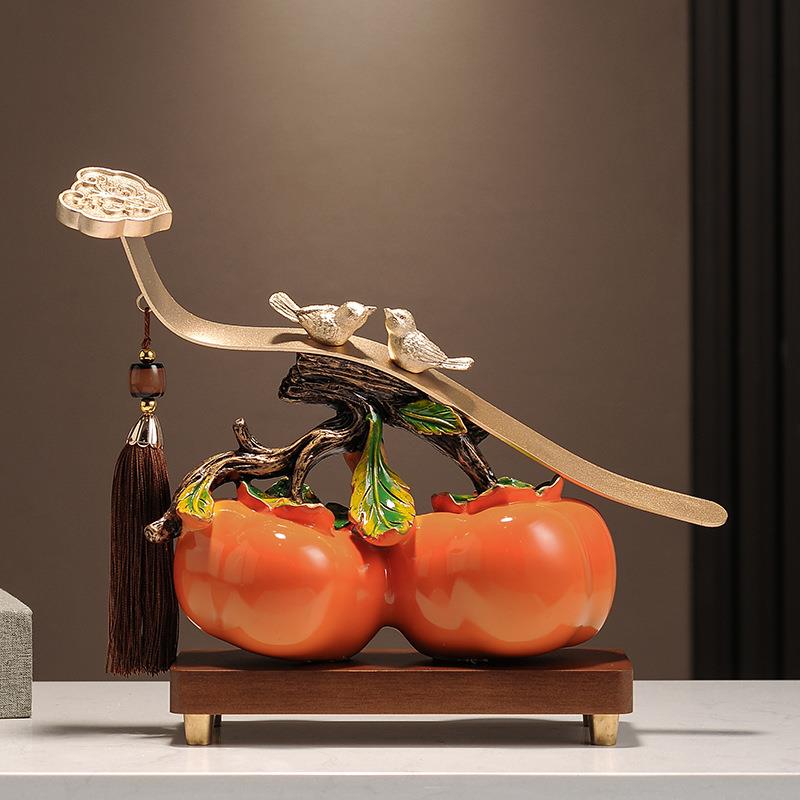 新中式事事如意柿子摆件高档客厅博古架装饰品办公室乔迁新居礼品