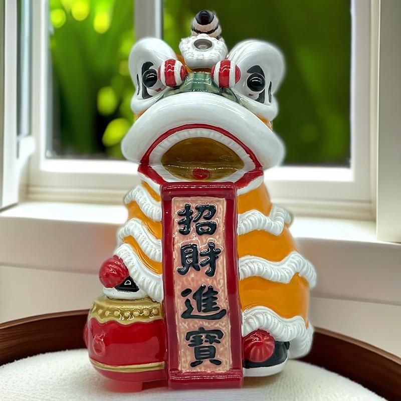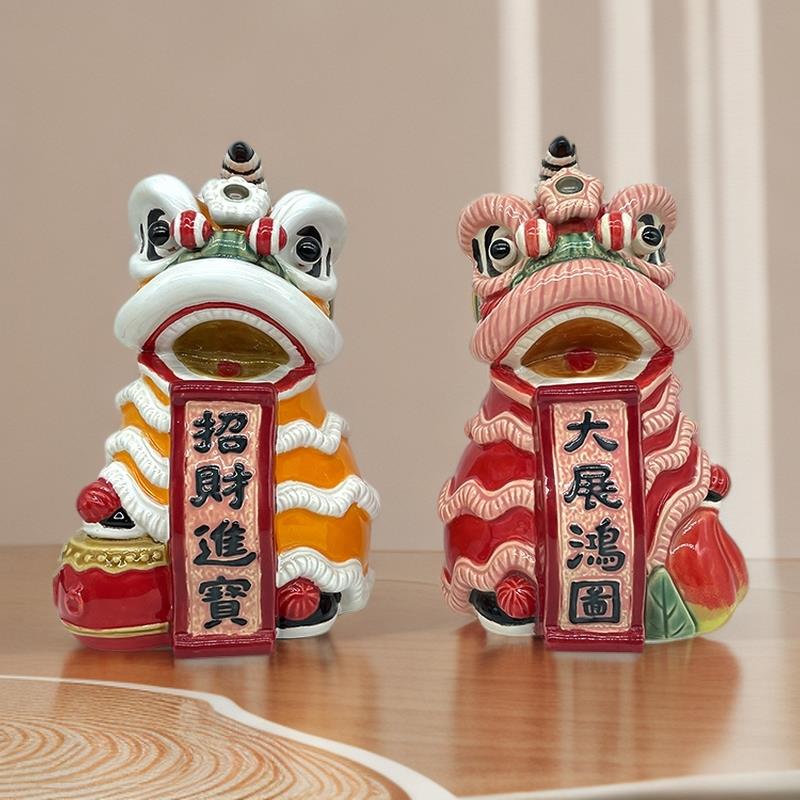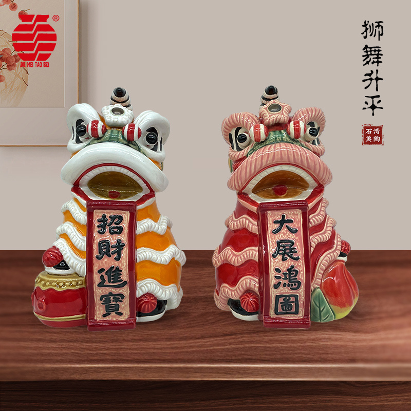 美陶《狮舞升平》石湾公仔 电视柜陶瓷雌雄狮子摆件开业乔迁礼品