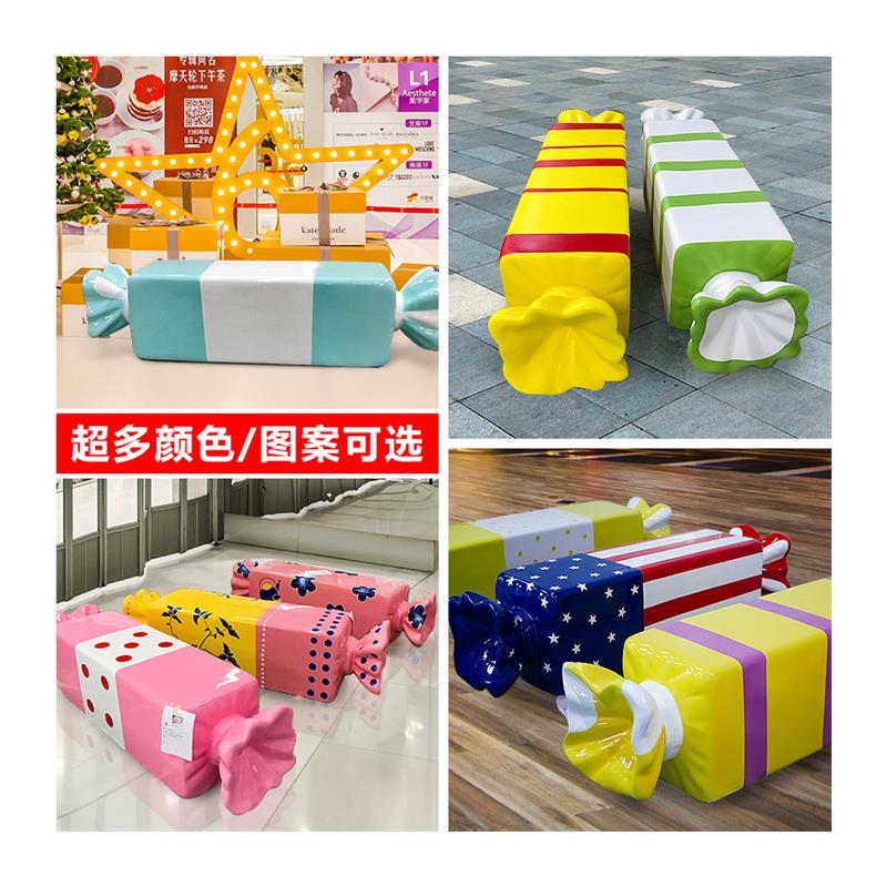户外卡通休闲糖果座椅玻璃钢雕塑商业街游乐场潮店美陈装饰大摆件