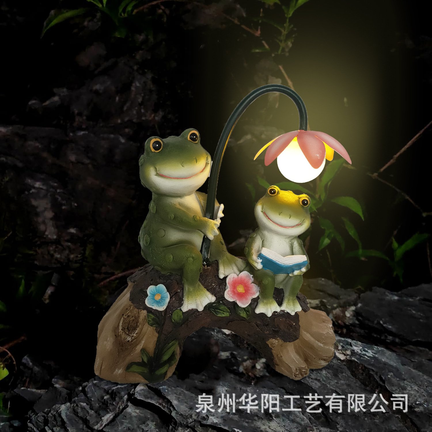 太阳能灯树脂工艺品花园摆件青蛙荷花灯下看书动物雕像装饰草坪灯