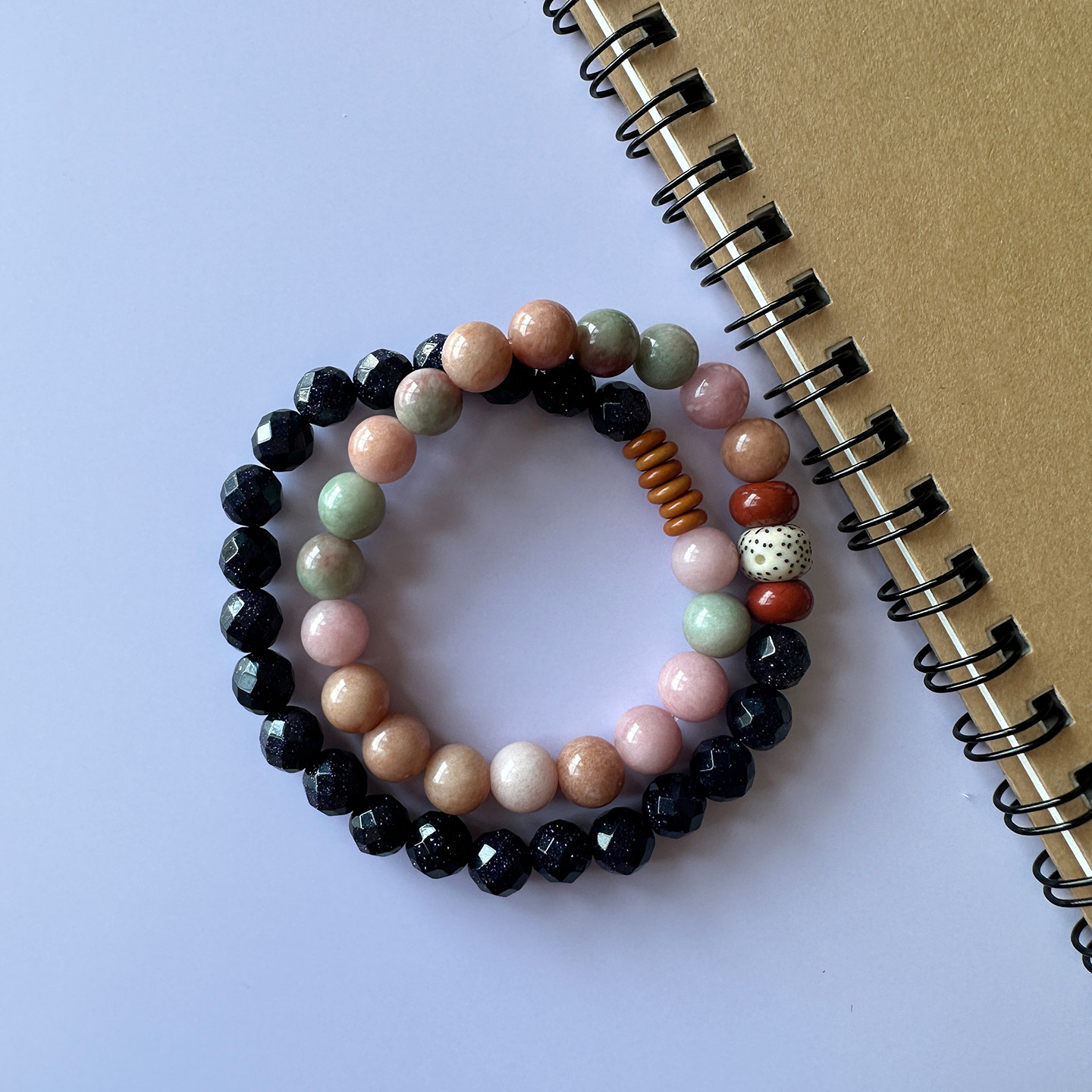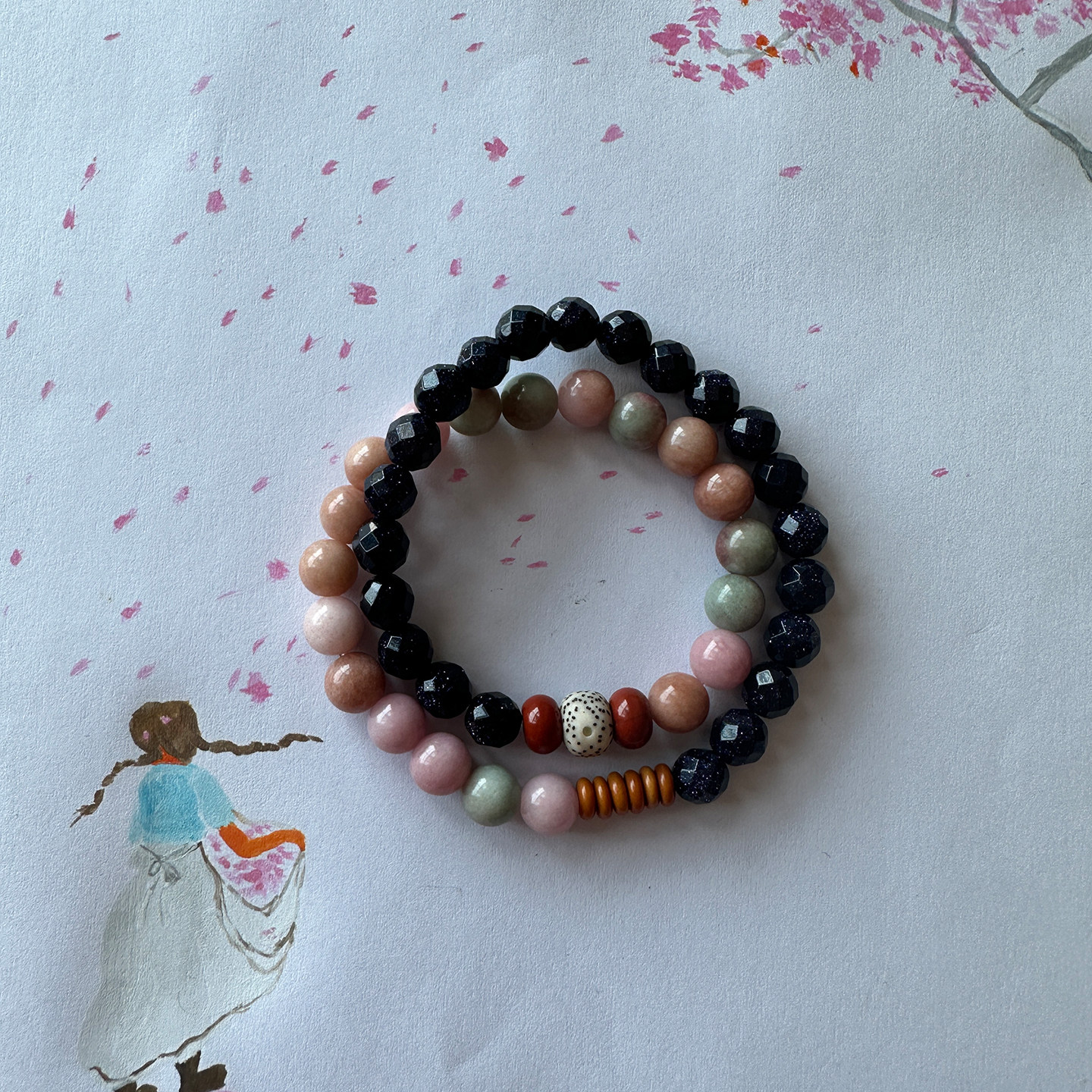 阿拉善手串清新甜美小众原创设计天然蓝砂石单双圈叠戴手链长款女