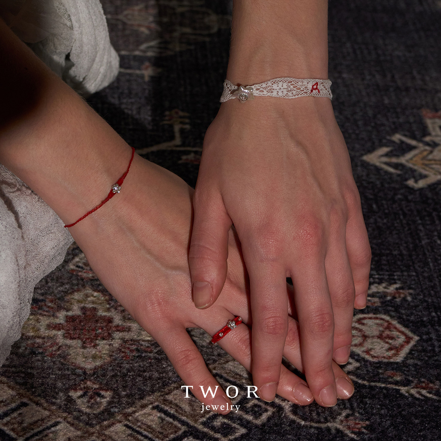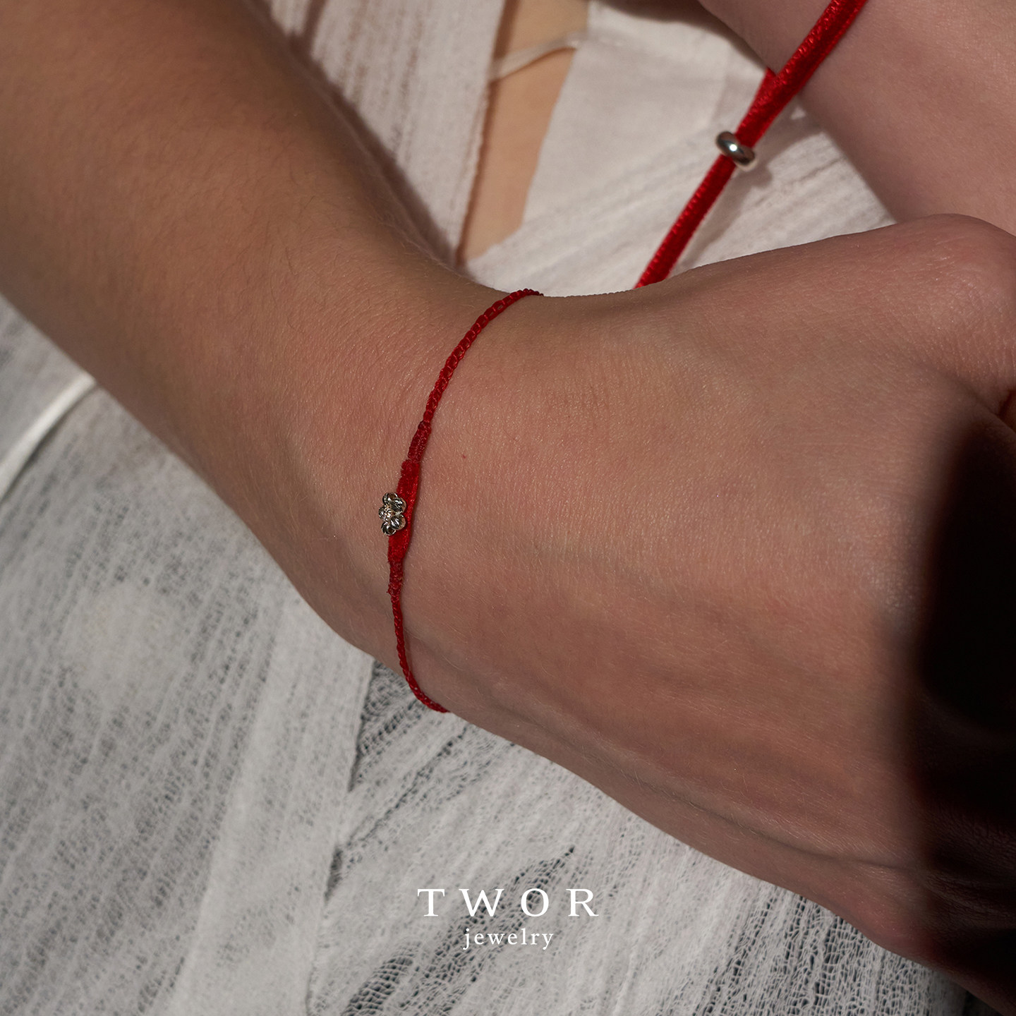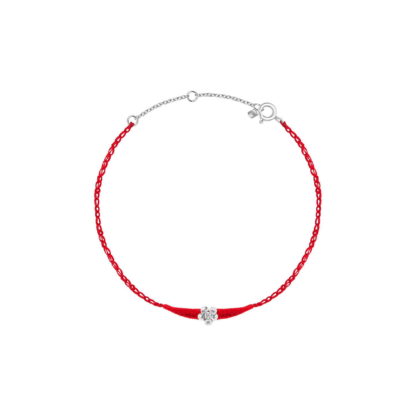TWOR缇坞/S925银红色丝绒蜡线编织花朵手链本命年转运小手绳礼物