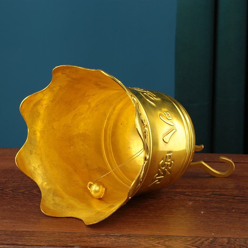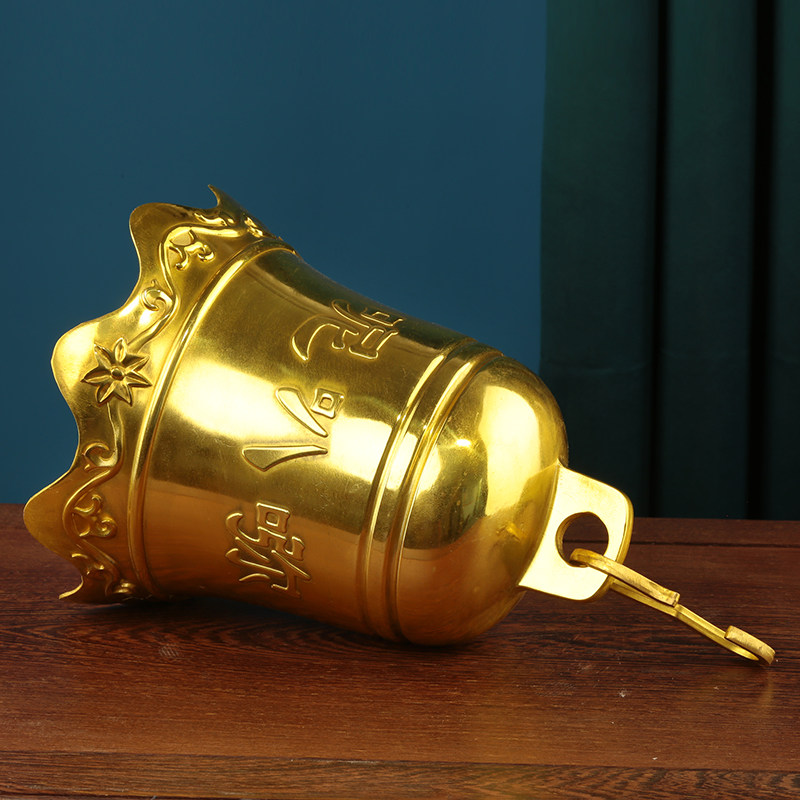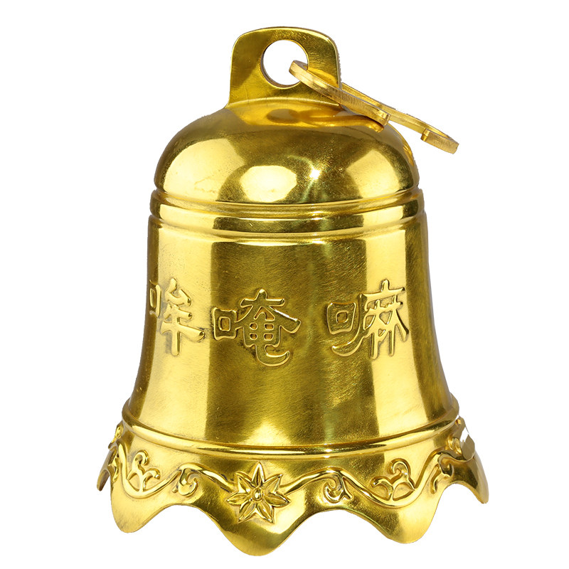 纯黄铜铃铛铜钟 六字真言铜钟风铃挂件家居装饰摆件大小号工艺品