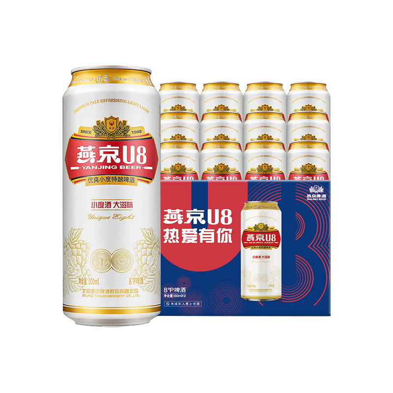 【明星同款】燕京啤酒U8优爽小度特酿500ml*12听整箱国货好礼批发