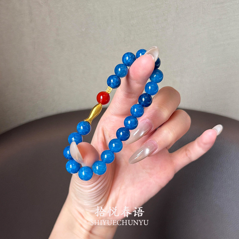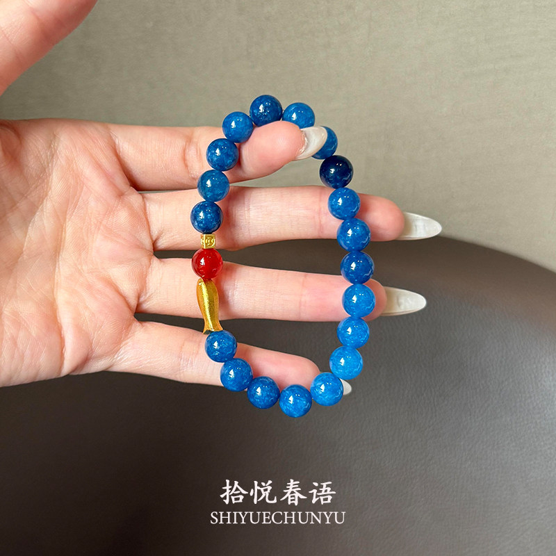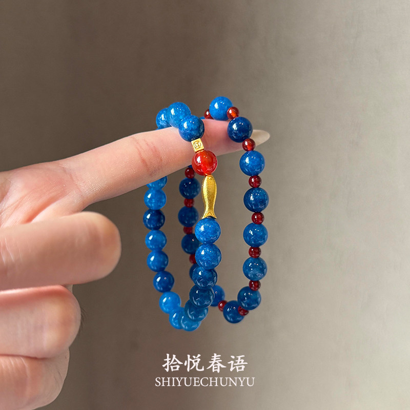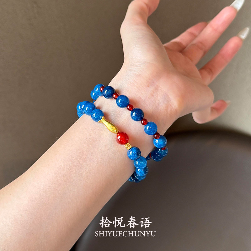 新中式蓝色串珠锦鲤手串秋冬新款复古高级感显白气质撞色手饰手链