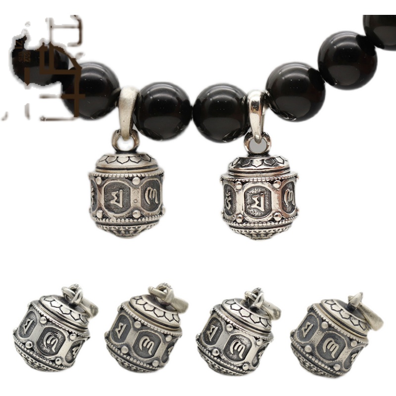 精工亮面哑面吊坠 六字真言圆点可打开嘎乌盒S925纯银挂坠DIY配件