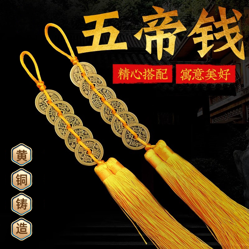 中国结五帝钱门对门吉祥结五吊钱破解挂件压门槛纯铜钱门祝福挂件