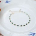 绿野 森林绿色锆石14k包金淡水米珍珠手链夏天 日系秀气超纤细女