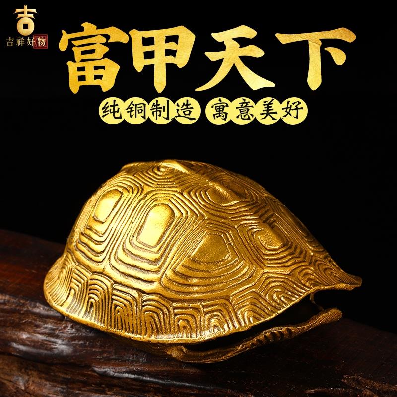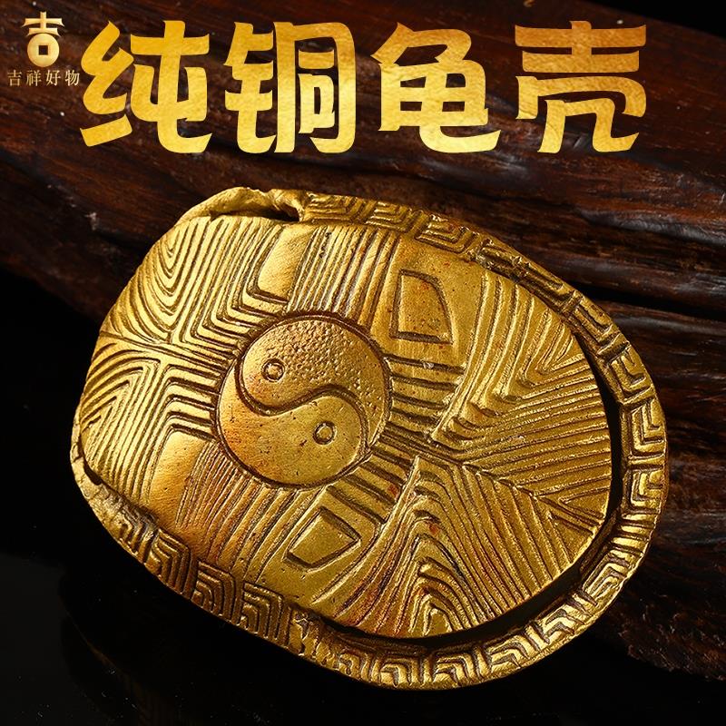 龟壳铜钱六爻工具 六十四卦摇卦工具组 黄铜龟壳八卦摆件 富甲天