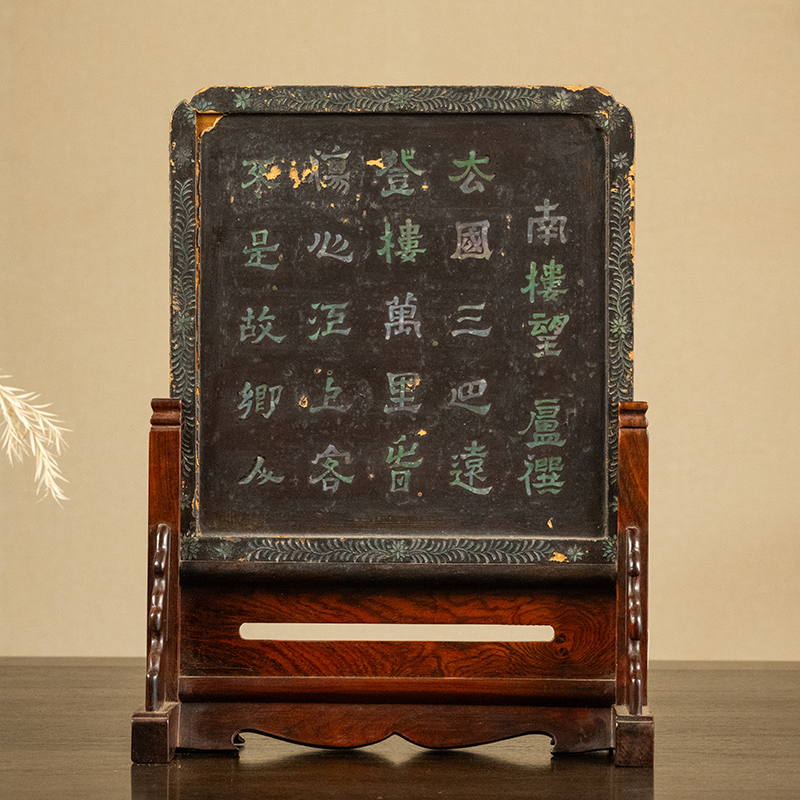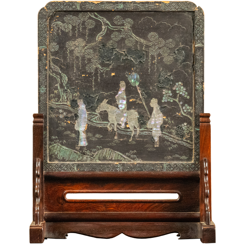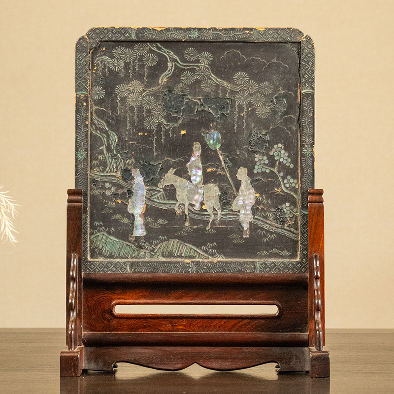 清代大漆螺钿人物诗文插屏老物件文玩古董收藏屏风砚屏桌面摆件