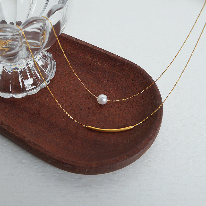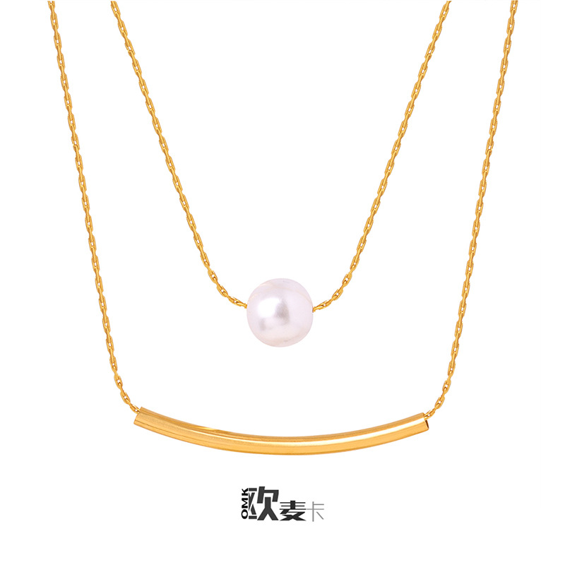 甜妹贝珠双层项链钛钢18k金小众设计西太后个性气质百搭锁骨链女