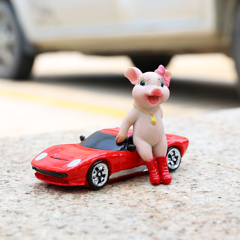 创意仿真猪摆件搬砖推车拼博小猪家居装饰品励志生日礼品礼物