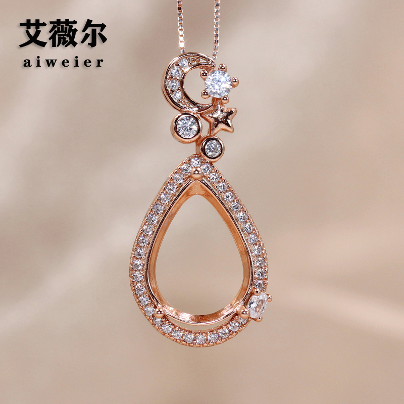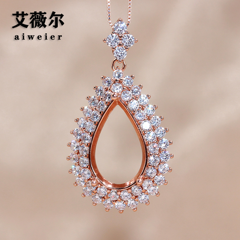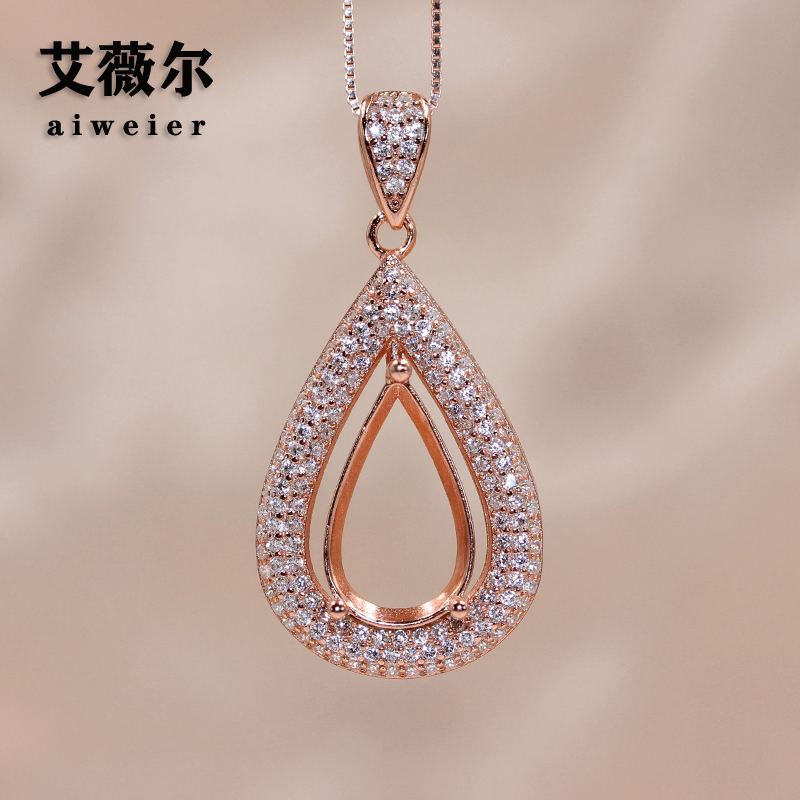 新款S925纯银吊坠空托水滴形梨形精工女镶嵌18K玫瑰金11*15-12*16
