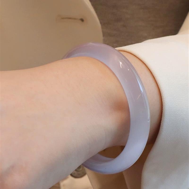 天然猫眼石高冰玻璃种淡紫色手镯女白月光荔枝冻玛瑙玉髓玉镯镯子