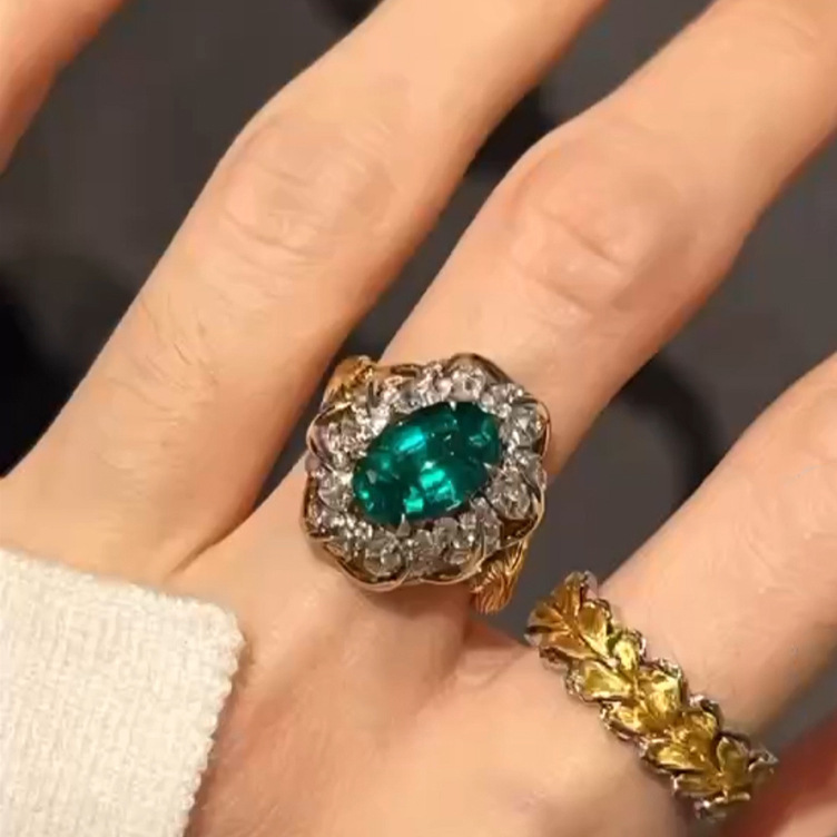 Young中古风vintage珠宝琉璃法式复古镀金灵蛇满钻古董彩宝戒指女