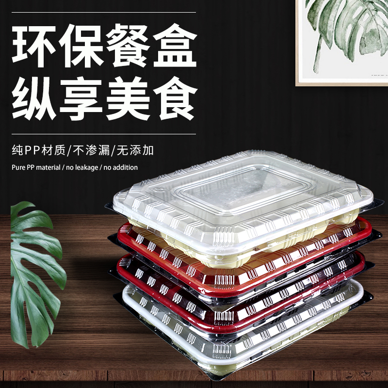 一次性快餐盒带盖三四五格外卖打包盒加厚便当盒长方形塑料套餐盘