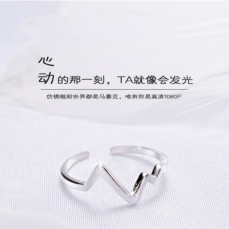当前位置:首页>商品详情>爱唯雅 s925纯银开口戒指心电心跳女ins潮小设计时尚个性食指波浪