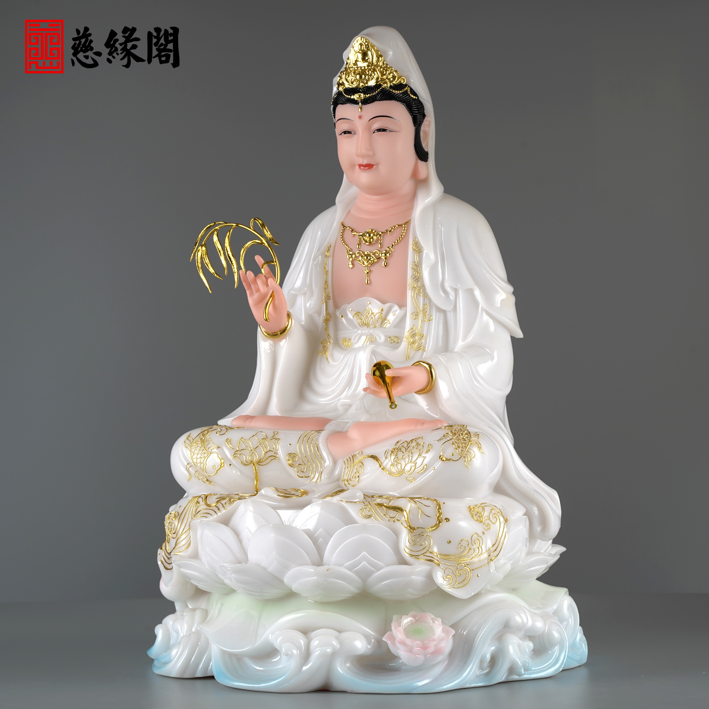 慈缘阁汉白玉水莲观音菩萨佛像家用供奉观音佛像观音像观世音菩萨