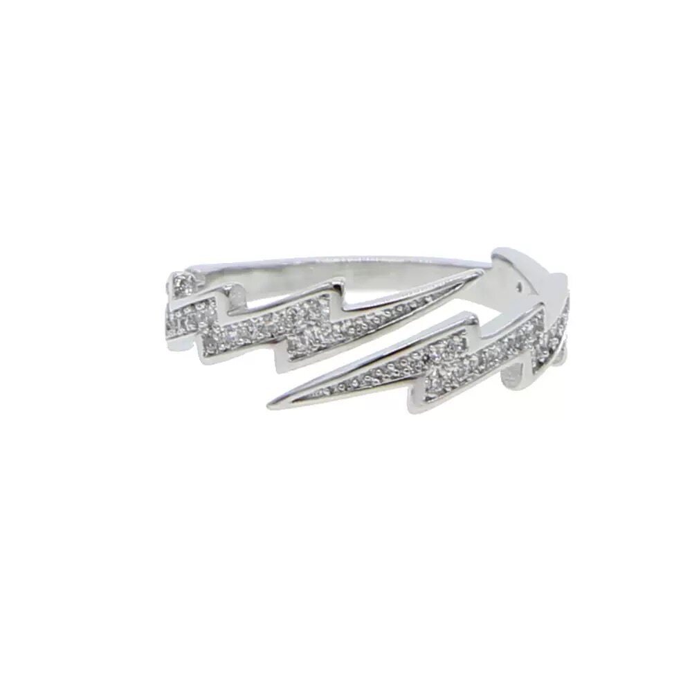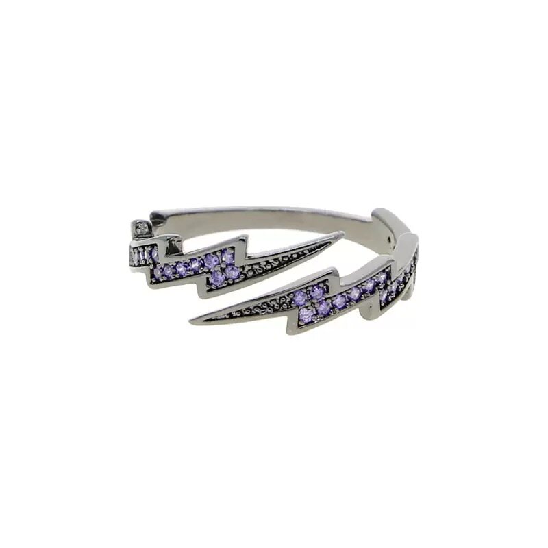 复古简约高级感出口余可调节指环闪电个性银色嘻哈开口戒指