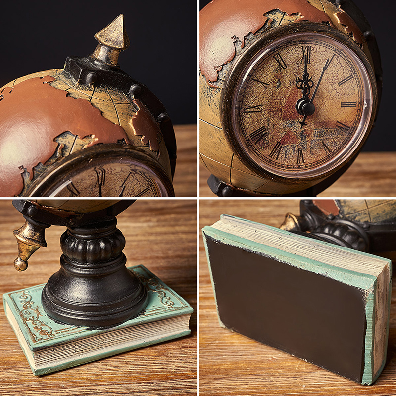 复古怀旧地球仪摆件客厅玄关酒柜博古架H软装饰品时钟模Z型桌面摆