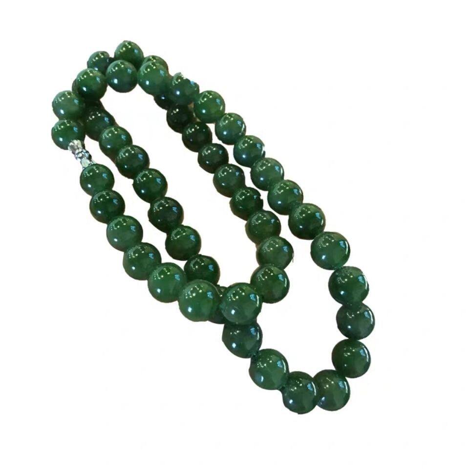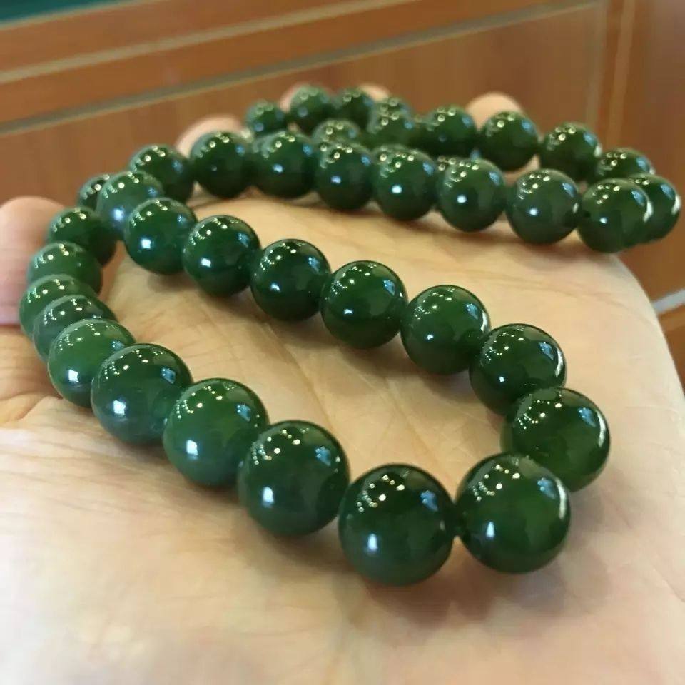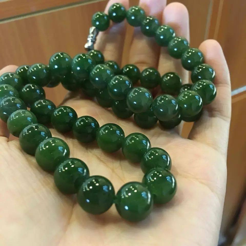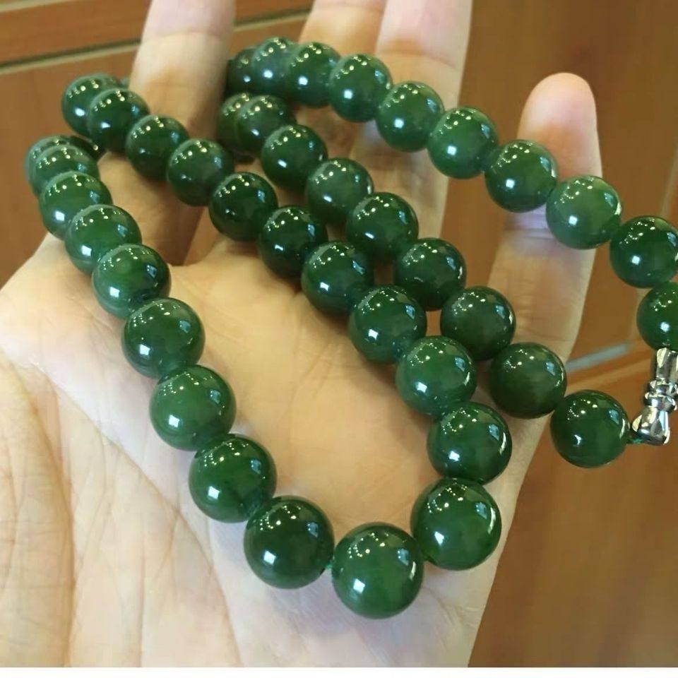 和田色玉碧绿色项链菠菜绿圆珠玉石挂件锁骨链玉女款送妈妈10M珠