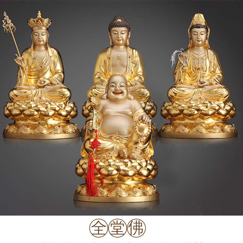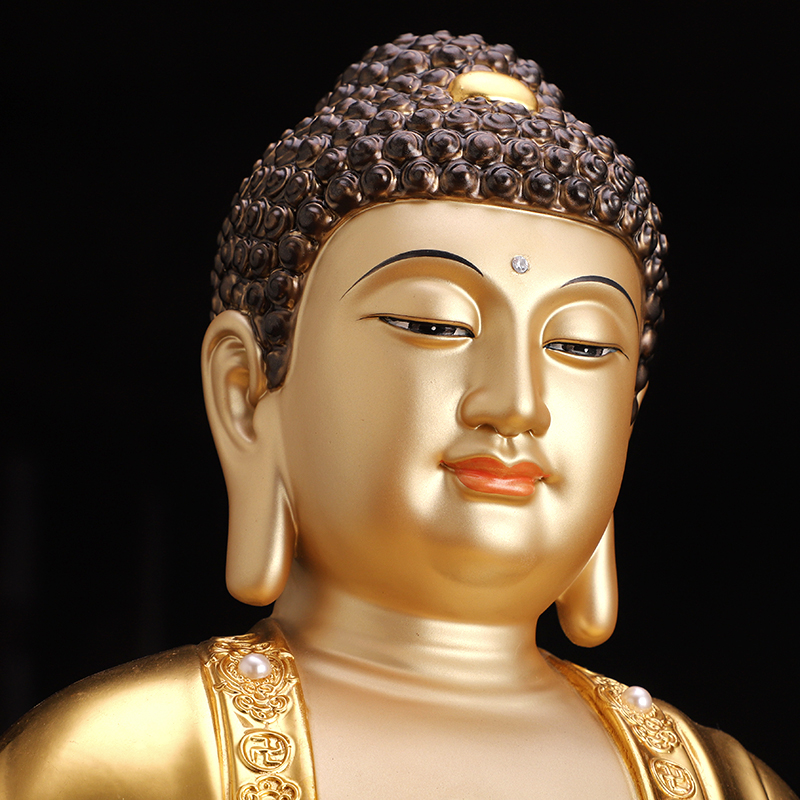 台湾纯铜贴金释迦牟尼佛像供奉家用阿弥陀佛药师佛三宝佛如来佛像