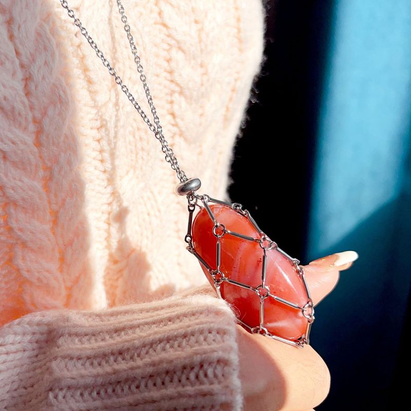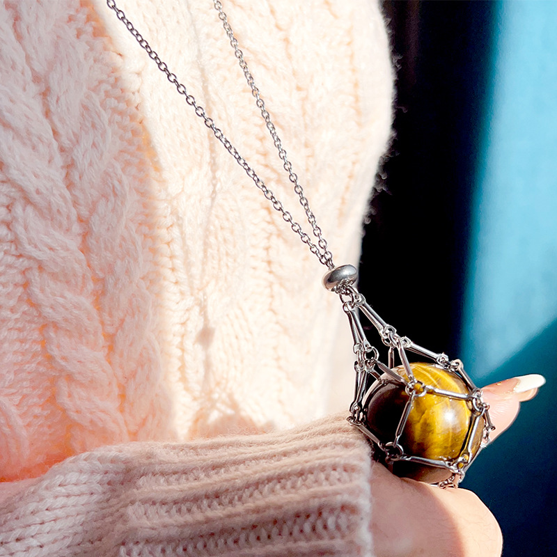 港澳不锈钢竹节网兜毛衣链长款小众项链搭配高级感天然水晶石挂件