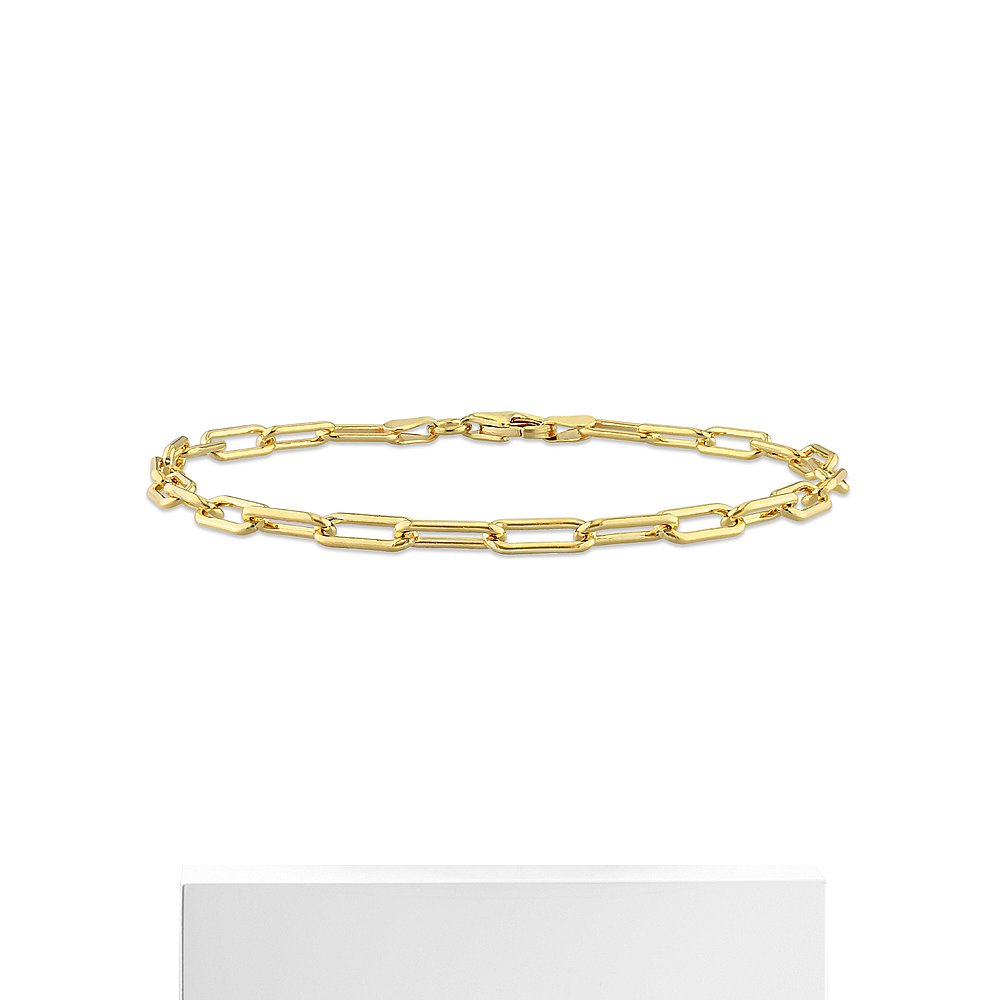 自营 Mimi & Max 3.5 毫米抛光回形针链式手链,镀黄色纯银 - 7.5