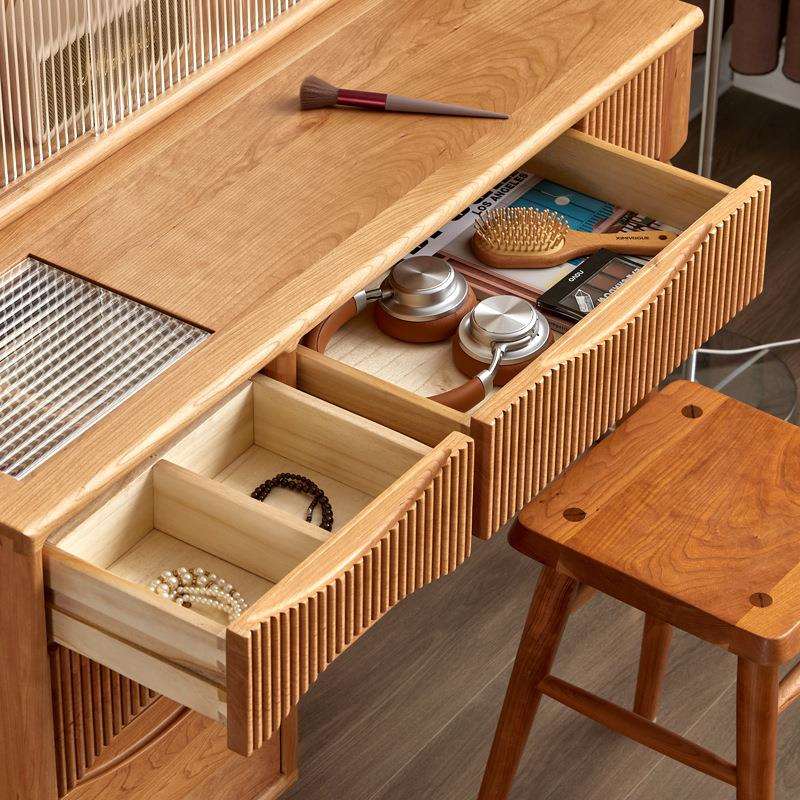 北欧樱桃木全实木朝阳梳妆台卧室现代简约欧式小型化妆桌斗柜一体