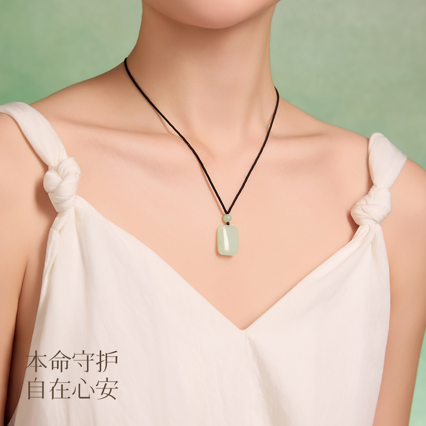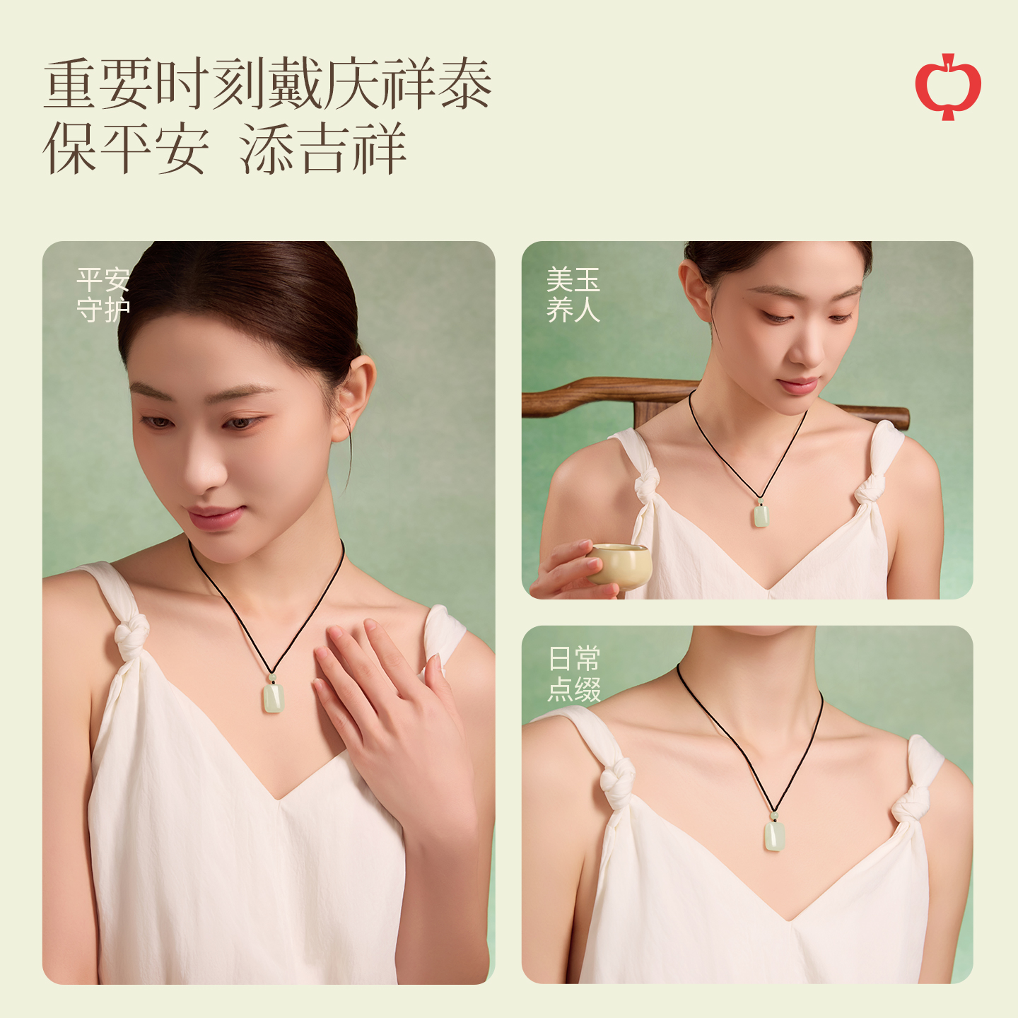 庆祥泰纯天然新疆和田玉无事牌吊坠男士真品高级女款玉石项链挂绳