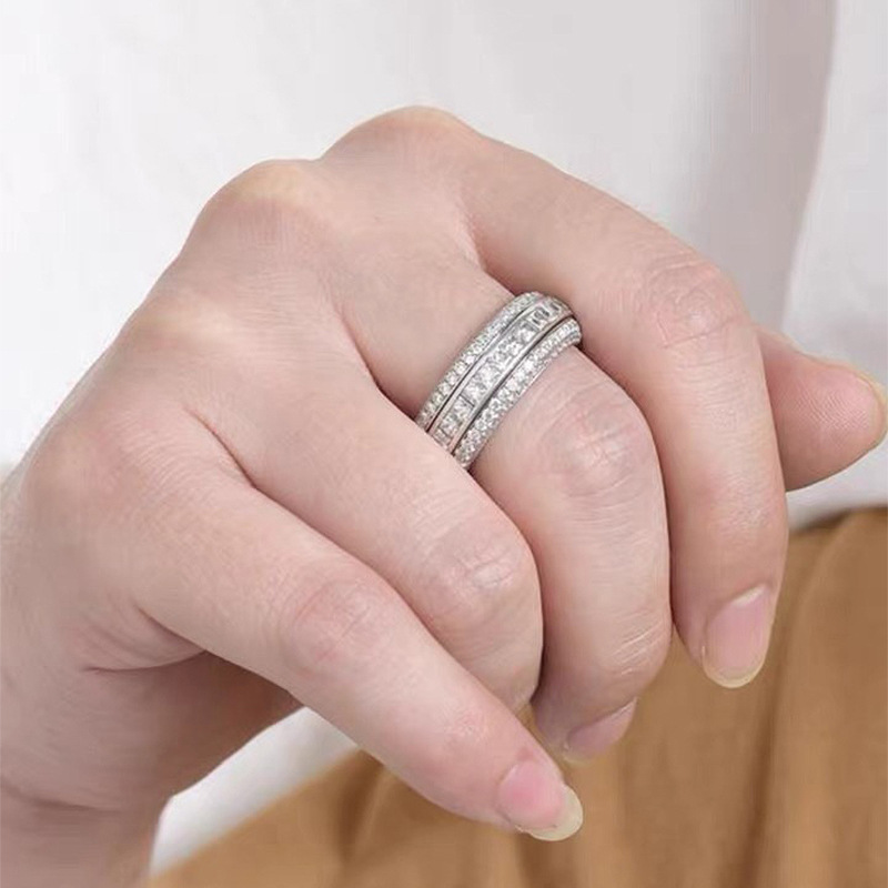 隆隆金珠宝S925银酷飒风豪镶满钻排戒小众设计个性款戒指男女同款