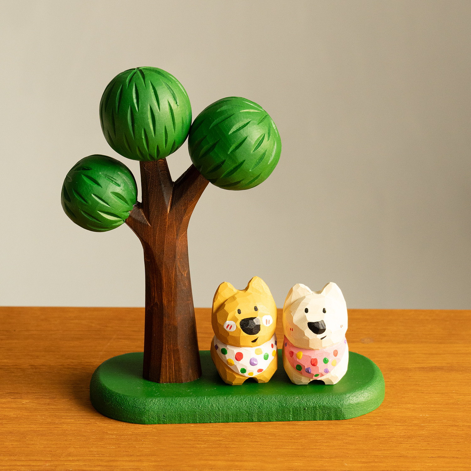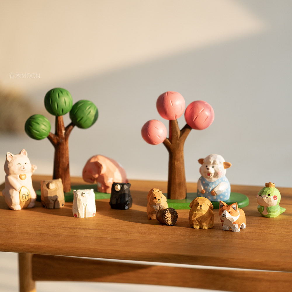 一棵树 生命力 绿树粉树木雕装饰品搭配可爱治愈木制品纯手工
