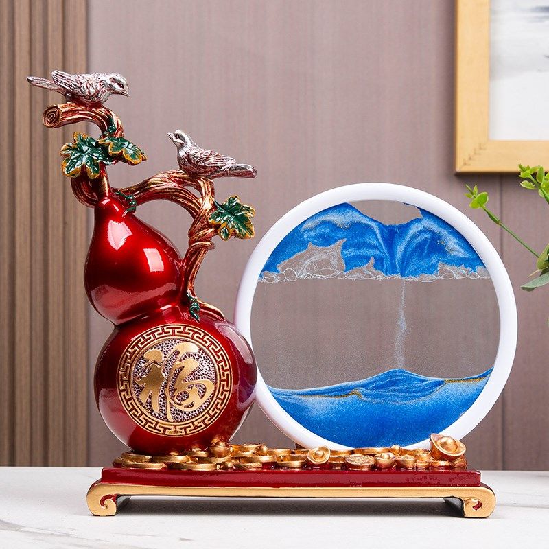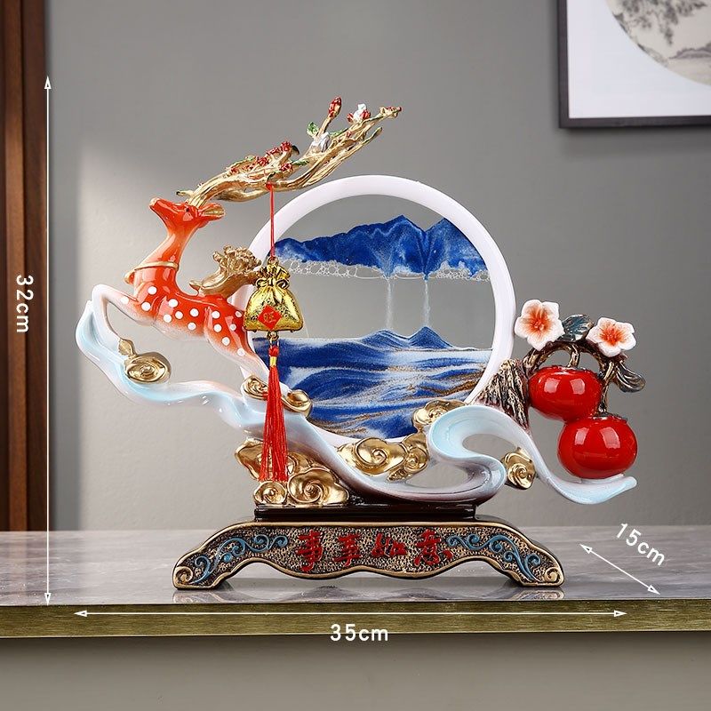 轻奢客厅玄关电视柜酒柜福鹿葫芦流沙画沙漏摆件乔迁装饰礼品摆件