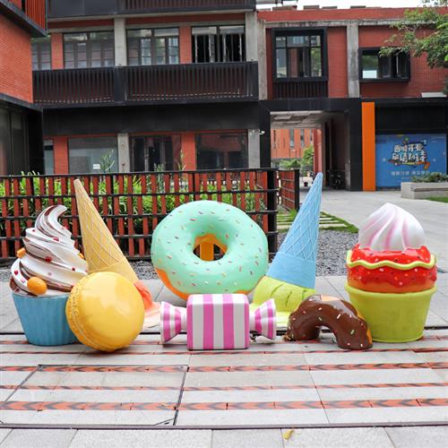 户外仿真甜甜圈冰淇淋甜筒雪糕雕塑商场甜品店门口玻璃钢模型摆件