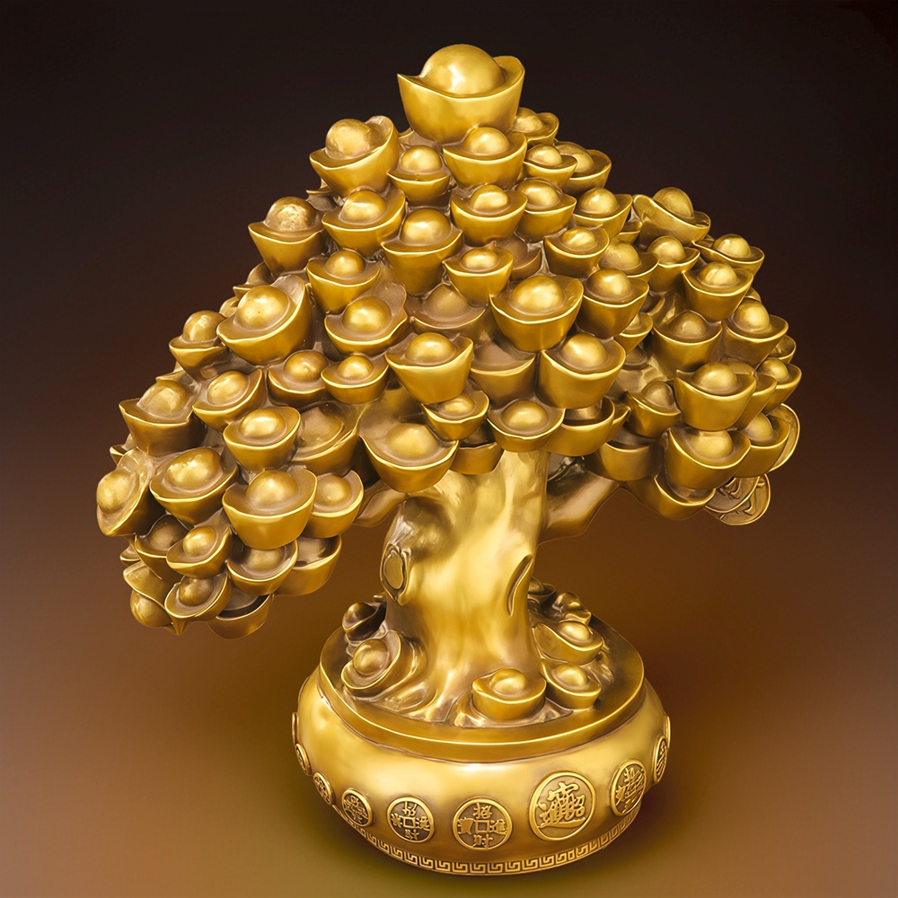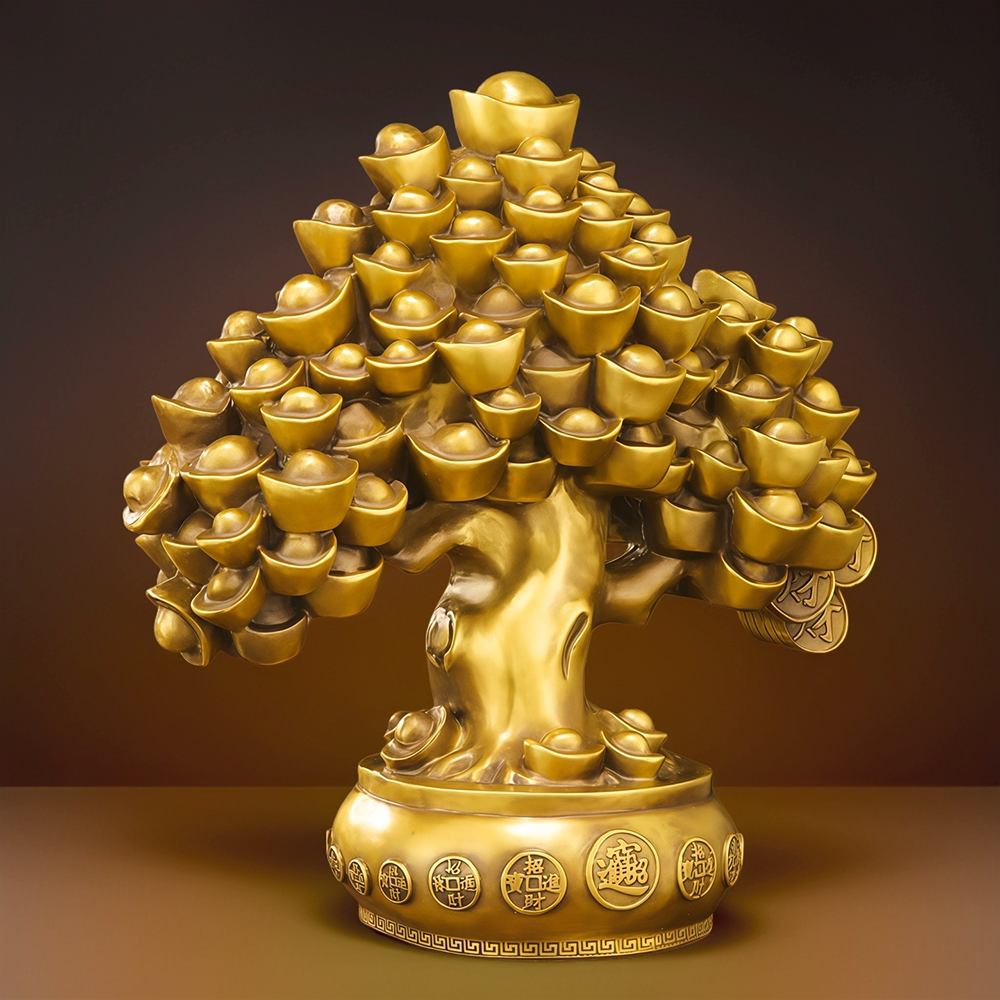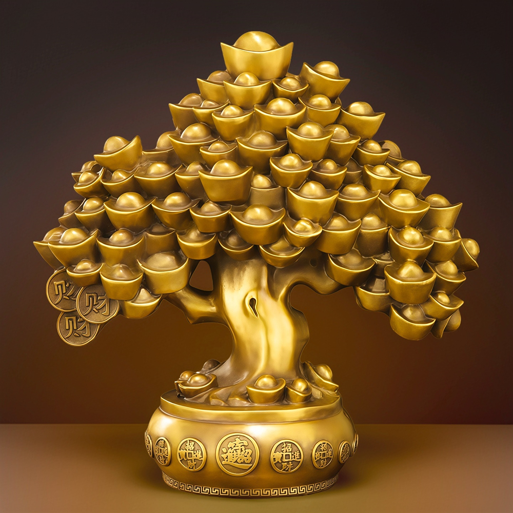 黄铜摇钱树元宝招财树发财树办公桌面装饰品艺术摆件礼品开业礼品