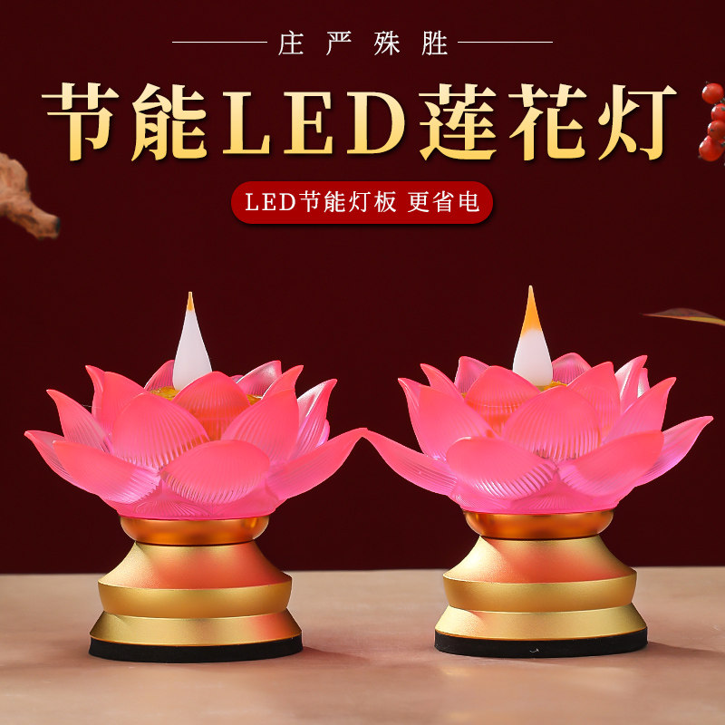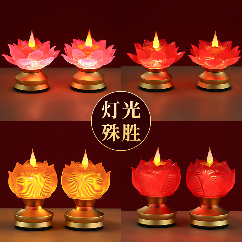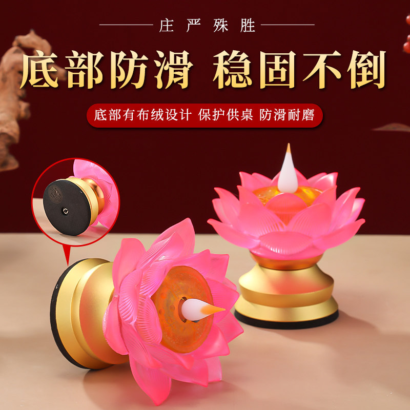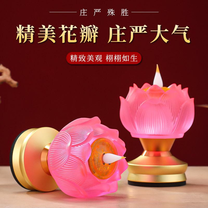 新款琉璃莲花灯佛前供灯LED长明灯家用琉璃灯仿真火焰供奉供佛灯