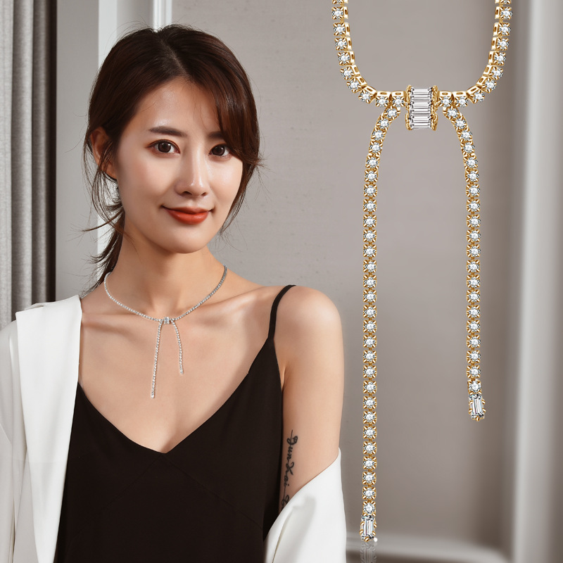 简约镶钻蝴蝶结项链时尚冷淡风颈链韩小众网红个性ins锁骨链