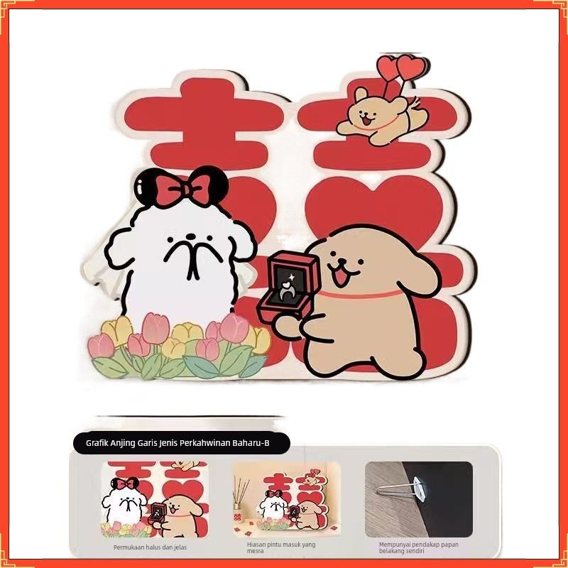 线条小狗喜字摆件订婚桌面摆台新婚婚礼结婚婚房布置装饰礼物道具