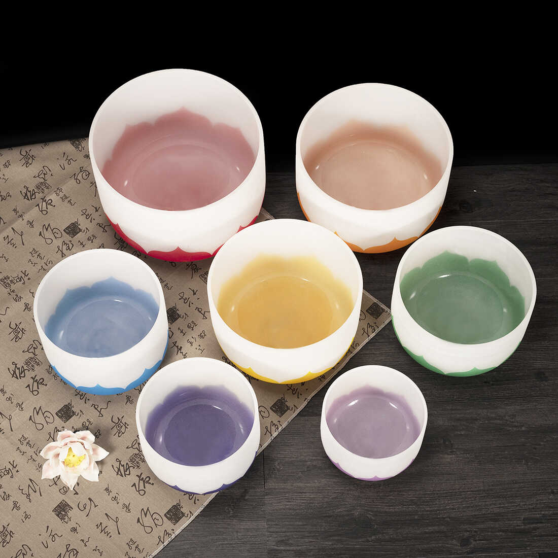 水晶钵音碗颂钵瑜伽梵音钵水晶摆件钵套装消磁水晶音乐碗七色莲花